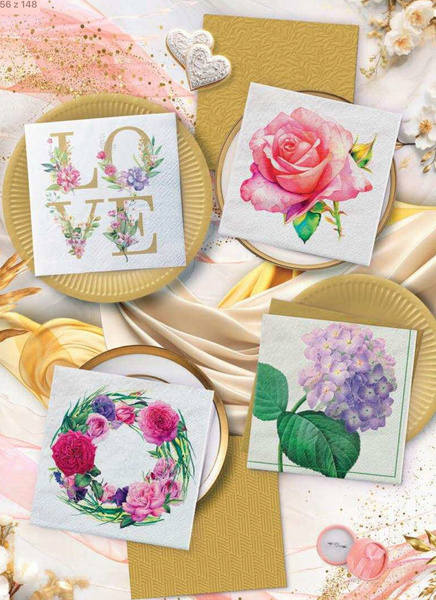 Eleganckie serwetki papierowe z napisem LOVE to stylowy dodatek, który doskonale sprawdzi się podczas romantycznych kolacji, wesel, zaręczyn, czy Walentynek.