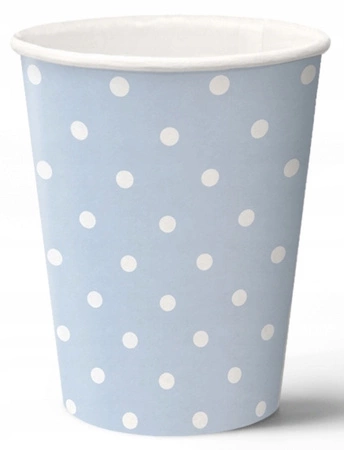 Kubeczki papierowe Dots Light Blue to elegancki i funkcjonalny dodatek, który doskonale uzupełni wystrój stołu na każdej uroczystości.