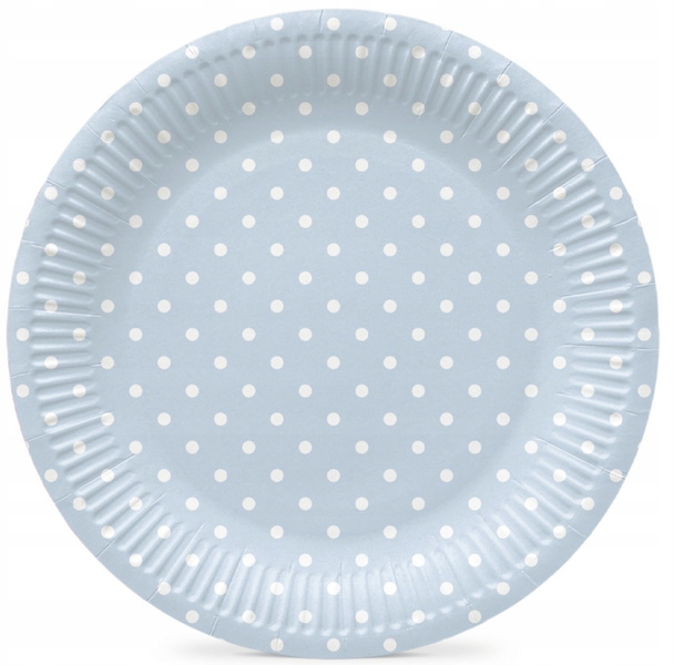 Delikatny jasnoniebieski kolor ozdobiony białymi kropeczkami sprawia, że talerzyki te doskonale sprawdzą się na takich okazjach jak urodziny, baby shower, chrzciny czy inne rodzinne spotkania.