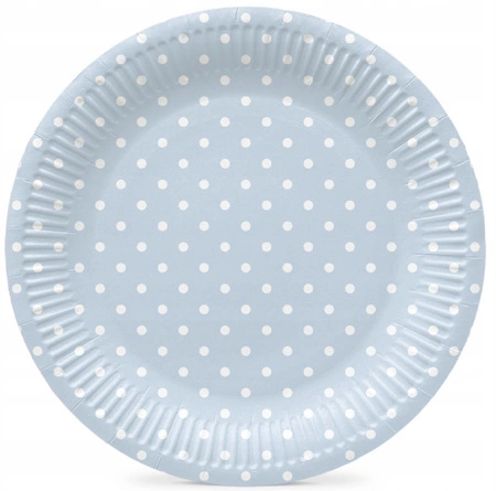 Talerzyki papierowe Dots Light Blue o średnicy 18 cm to uroczy i praktyczny dodatek, który wprowadzi subtelny, dziecięcy urok na każde przyjęcie.