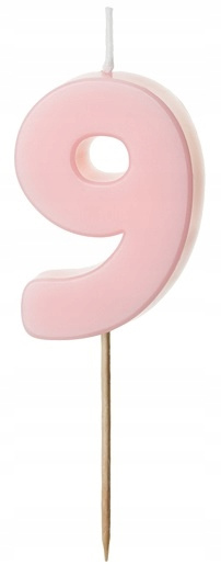 Urocza świeczka w kształcie cyfry 9 w delikatnym, jasnoróżowym kolorze to idealna dekoracja tortu na urodziny dzieci i dorosłych.