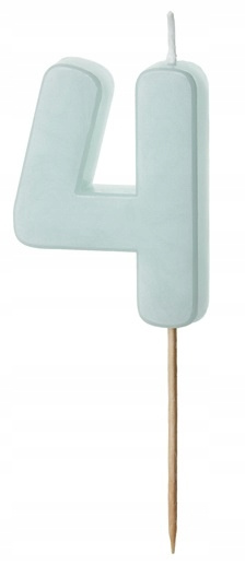 Urocza świeczka w kształcie cyfry 4 w delikatnym, jasnoniebieskim kolorze to idealna dekoracja tortu na urodziny dzieci i dorosłych.