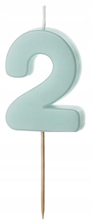 Urocza świeczka w kształcie cyfry 2 w delikatnym, jasnoniebieskim kolorze to idealna dekoracja tortu na urodziny dzieci i dorosłych.
