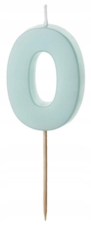 Urocza świeczka w kształcie cyfry 0 w delikatnym, jasnoniebieskim kolorze to idealna dekoracja tortu na urodziny dzieci i dorosłych.