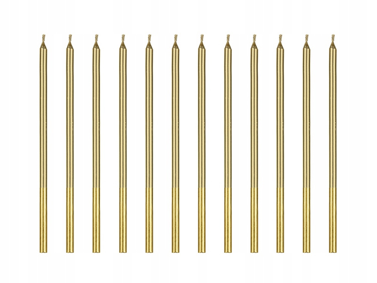 Eleganckie, gładkie świeczki urodzinowe w kolorze złotym to klasyka, która sprawdzi się na każdym przyjęciu.