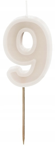 Świeczka urodzinowa cyferka 9 – beż, 6 cm