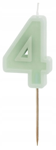 Urocza świeczka w kształcie cyfry 4 w delikatnym, zielonym kolorze to idealna dekoracja tortu na urodziny dzieci i dorosłych.
