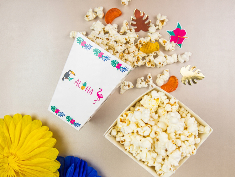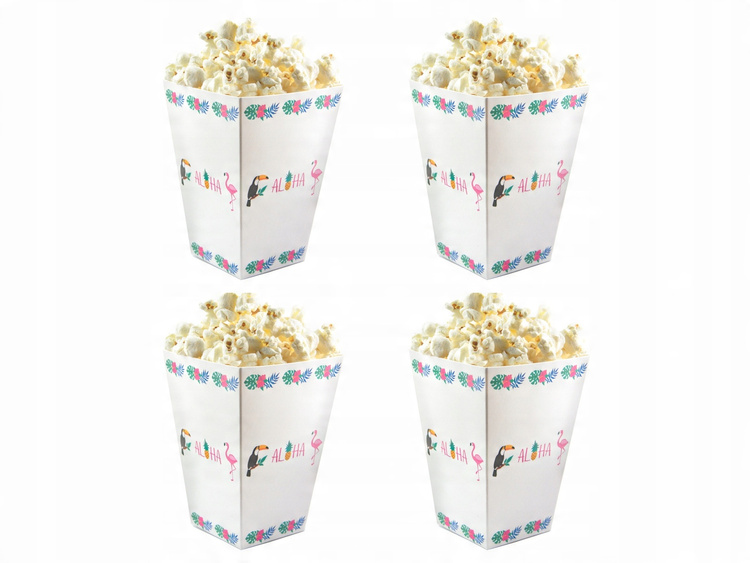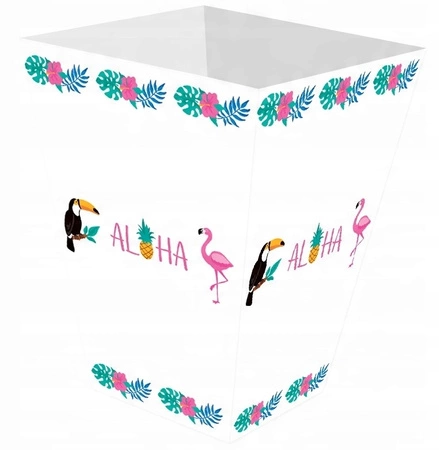 Papierowe pudełka z tropikalnej kolekcji Aloha Party to praktyczny i stylowy dodatek do letnich przyjęć, urodzin, garden party czy imprez tematycznych w klimacie hawajskim. Idealne do serwowania popcornu, słodyczy oraz innych przekąsek.