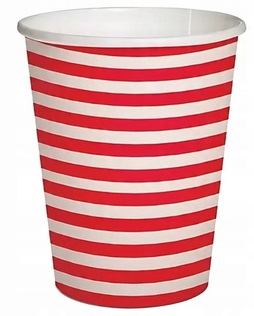 Stylowe białe kubeczki papierowe w czerwone paski to praktyczny i dekoracyjny dodatek do wszelkiego rodzaju przyjęć – od urodzin, przez pikniki, aż po morskie lub eleganckie imprezy tematyczne.