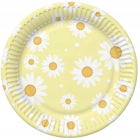Zestaw papierowych talerzyków z uroczym motywem stokrotek to idealna propozycja na wiosenne i letnie przyjęcia.