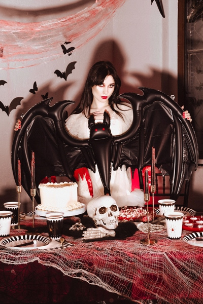 Balon foliowy w kształcie nietoperza to doskonała dekoracja na Halloween lub inne mroczne przyjęcia tematyczne.