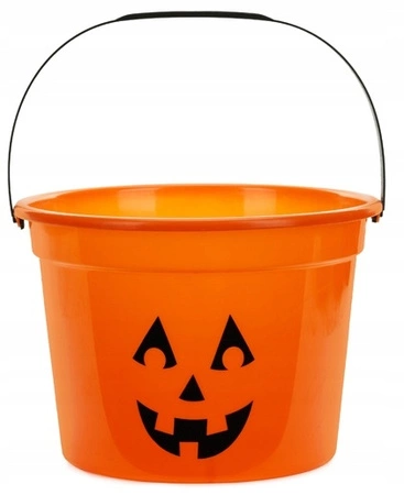 Wiaderko Dynia w kolorze intensywnej pomarańczy z czarnym nadrukiem to klasyczny i nieodzowny element Halloween!