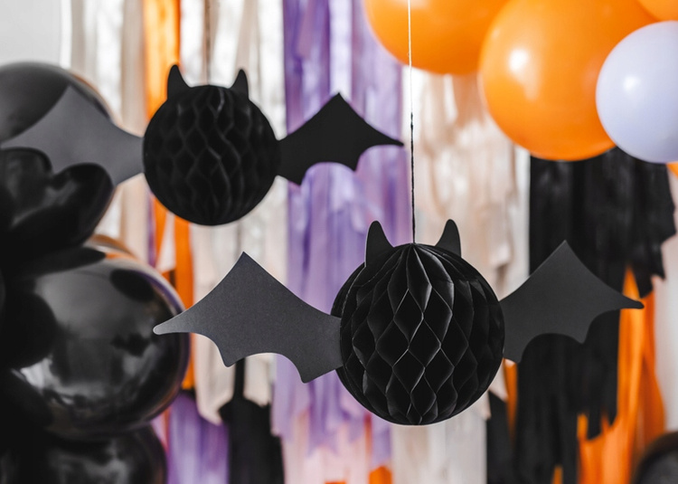 Dekoracja wisząca bibułowa Nietoperz to lekka i efektowna ozdoba, która idealnie wpisuje się w klimat Halloween.