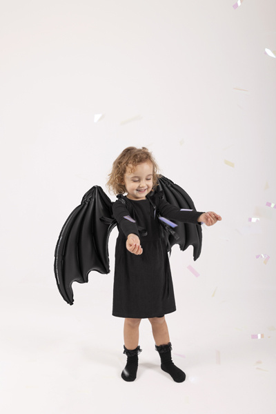 Balon w kształcie skrzydeł nietoperza w efektownym, czarnym kolorze z gwiazdkami.