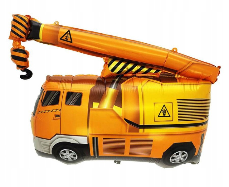 Duży balon foliowy w kształcie ciężarówki z dźwigiem to doskonała dekoracja na urodziny każdego małego fana motoryzacji i maszyn budowlanych.