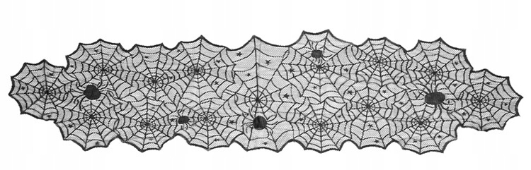 Bieżnik dekoracyjny w kolorze czarnym z motywem pajęczyny to elegancki i praktyczny dodatek do stołu na Halloween lub imprezy tematyczne.