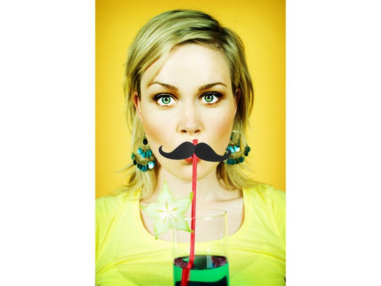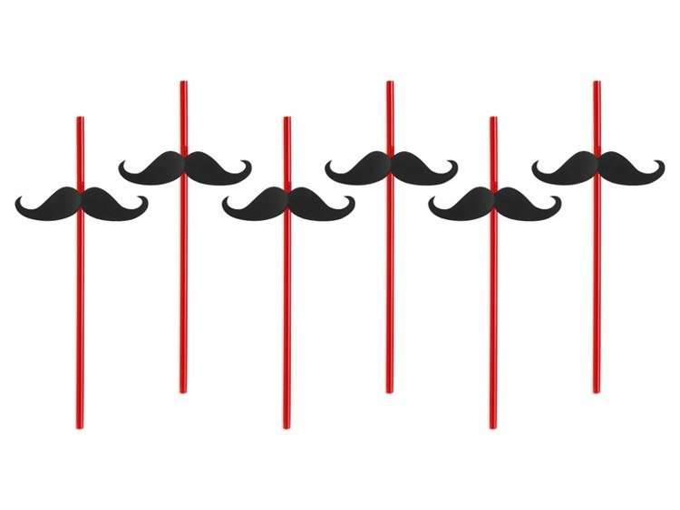 Słomki party w kolorze czerwonym, z czarnymi wąsami