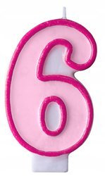Świeczka urodzinowaCyferka 6 w kolorze różowymNiezbędna na każdym torcie!Idealna dekoracja tortu na urodzinach.Wysokość: około 7cmCena dotyczy 1 sztuki