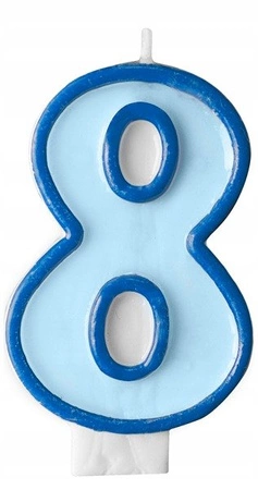Świeczka urodzinowaCyferka 8 w kolorze niebieskimNiezbędna na każdym torcie!Idealna dekoracja tortu na urodzinach.Wysokość: około 7cmCena dotyczy 1 sztuki