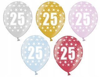 DUŻE Balony z nadrukiem na 25 urodziny 5szt mix