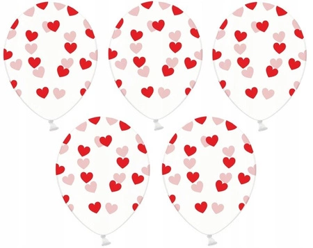 Balony Strong Serduszkaw kolorze Crystal Clear - przezroczyste,z czerwonym nadrukiemrozmiar 14 cali - około 36 centymetrówCena dotyczy 5 sztuk
