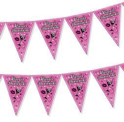 Trójkątne chorągiewki /flagi, z nadrukiem utrzymanym w klimatach panieńskiego szaleństwa (nadruk z dwóch stron chorągiewki).