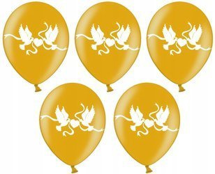 Duże Balony 36cm Złote Metaliczne z gołąbkami 5szt