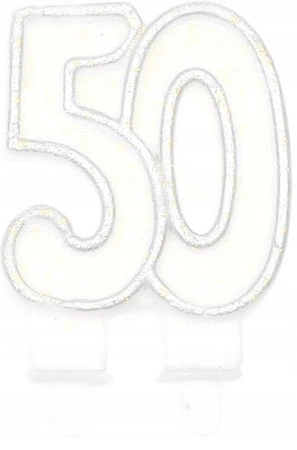 Świeczka w kolorze białym delikatnie obsypana brokatem