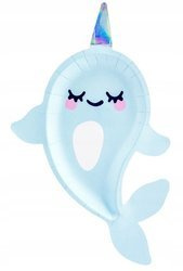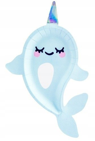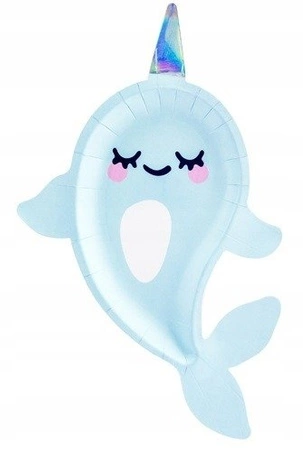 Talerzyki BŁĘKITNE NARWAL na urodziny 18cm 6szt.