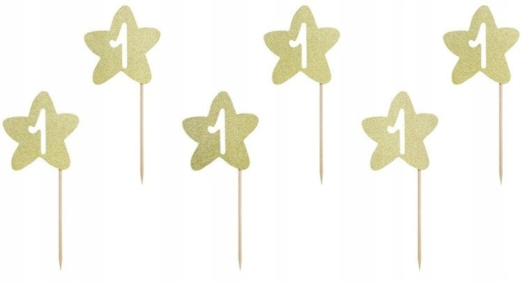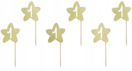 Dekoracje do muffinek 1st Birthday - Gwiazdki w kolorze złotym brokatowym