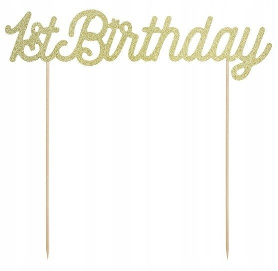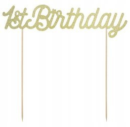 Topper na tort 1st Birthday w kolorze złotym brokatowym