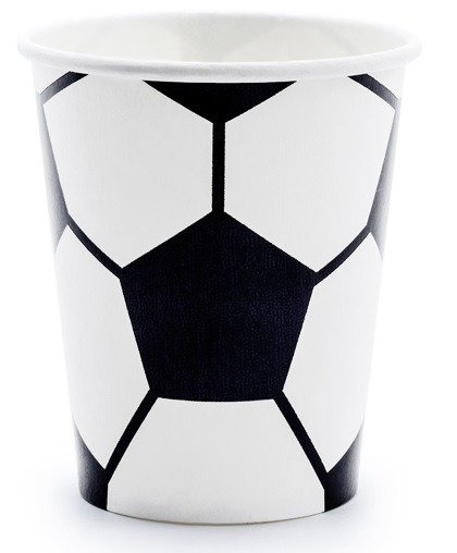 Kubeczki papierowe Piłka zrobione z matowego papieru z czarnym błyszczącym nadrukiem