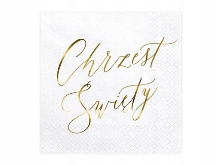 Serwetki papierowe w kolorze białym ze złotym metalizowanym napisem Chrzest Święty