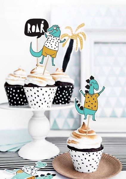 TOPPER na tort DINOZAURY 15,5-20cm ROCZEK 5szt