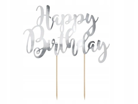 Topper na tort Happy Birthday w kolorze srebrnym