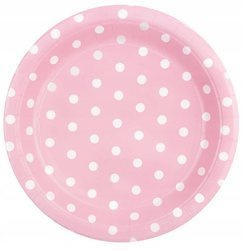 Talerzyki RÓŻOWE w białe KROPKI na urodziny 6szt