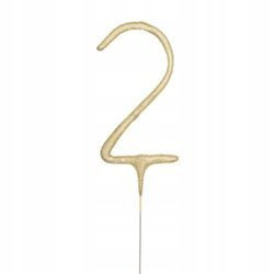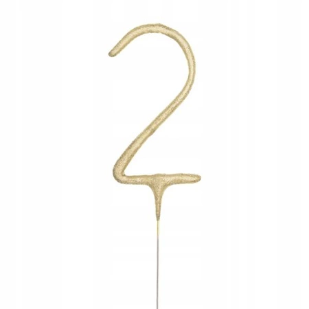 Zimne ognie sztuczne ZŁOTA CYFRA 2 urodziny tort