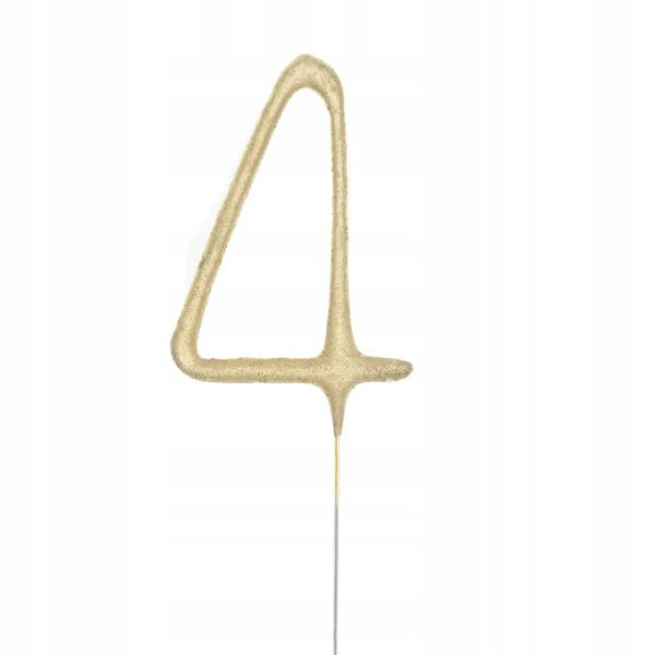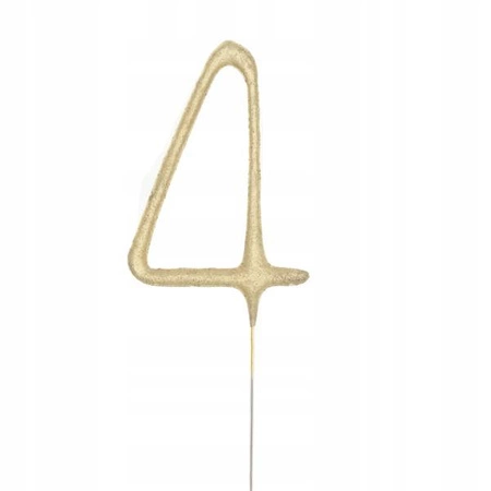 Zimne ognie sztuczne ZŁOTA CYFRA 4 urodziny tort