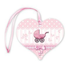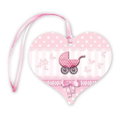Do każdej z zawieszek przyczepiona atłasowa wstążeczka.