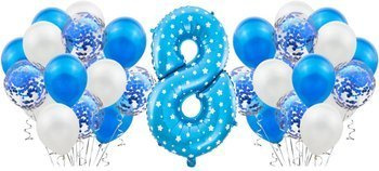 Zestaw NIEBIESKI na 8 URODZINY BALONY konfetti