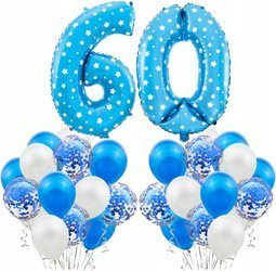 Zestaw NIEBIESKI na 60 URODZINY BALONY konfetti