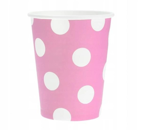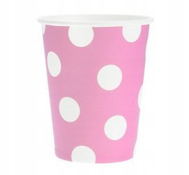 Kubeczki papierowe RÓŻOWE w białe Groszki 6szt