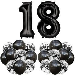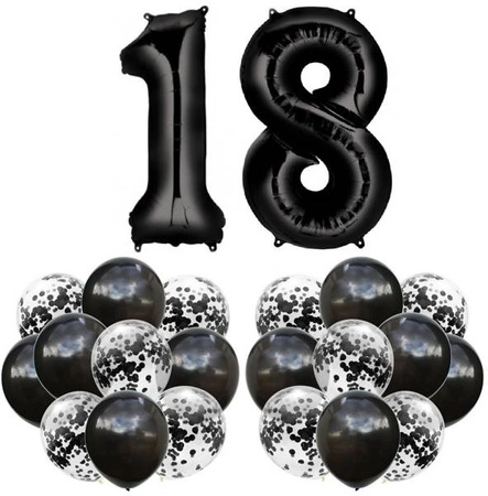 Zestaw CZARNY BALONY na 18 URODZINY 100cm konfetti