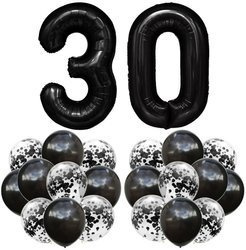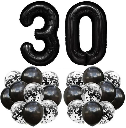 Zestaw CZARNY BALONY na 30 URODZINY 100cm konfetti