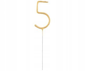 Zimne ognie sztuczne ZŁOTA CYFRA 5 urodziny tort