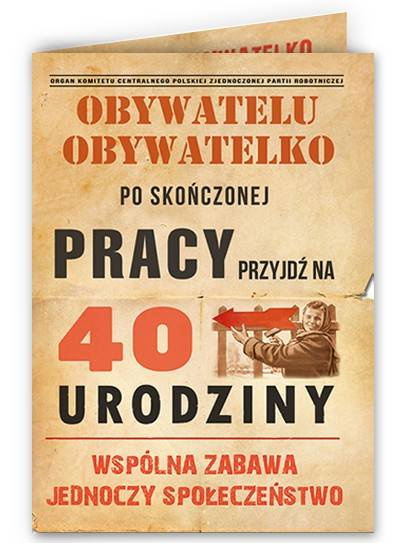 Zaproszenie na 40 urodziny utrzymane w nostalgicznych klimatach PRL-u.