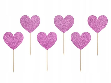 Dekoracje do muffinek Sweet Love - Serca w kolorze ciemnoróżowym brokatowym