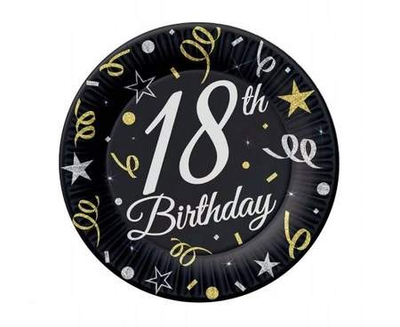 Talerzyki CZARNE na 18 URODZINY papierowe 6szt