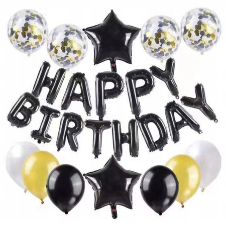 Zestaw CZARNY ZŁOTY balony HAPPY BIRTHDAY urodziny