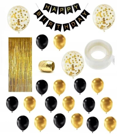 Zestaw CZARNY ZŁOTY balony HAPPY BIRTHDAY urodziny